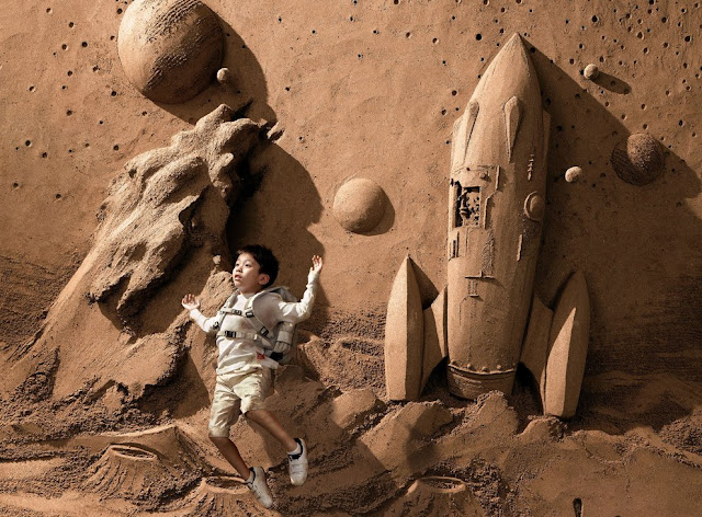 Esculturad de arena del campeon del mundo Joo Heng Tan