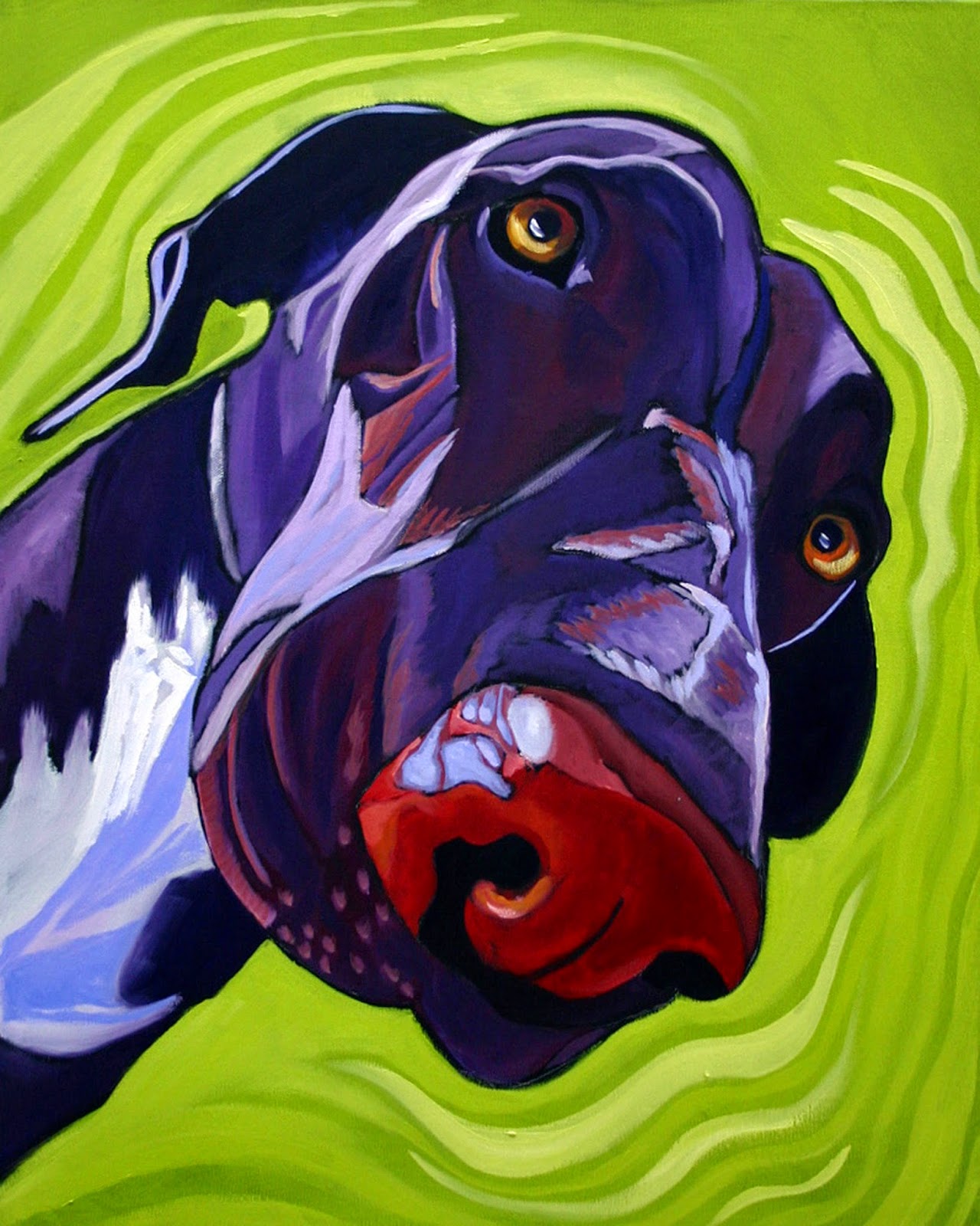 Con sus obras expuestas en diversas ferias de arte, pintura al óleo está dedicada en gran parte a los perros. Si metes la pata, que ha visto una de sus obras allí ahora?