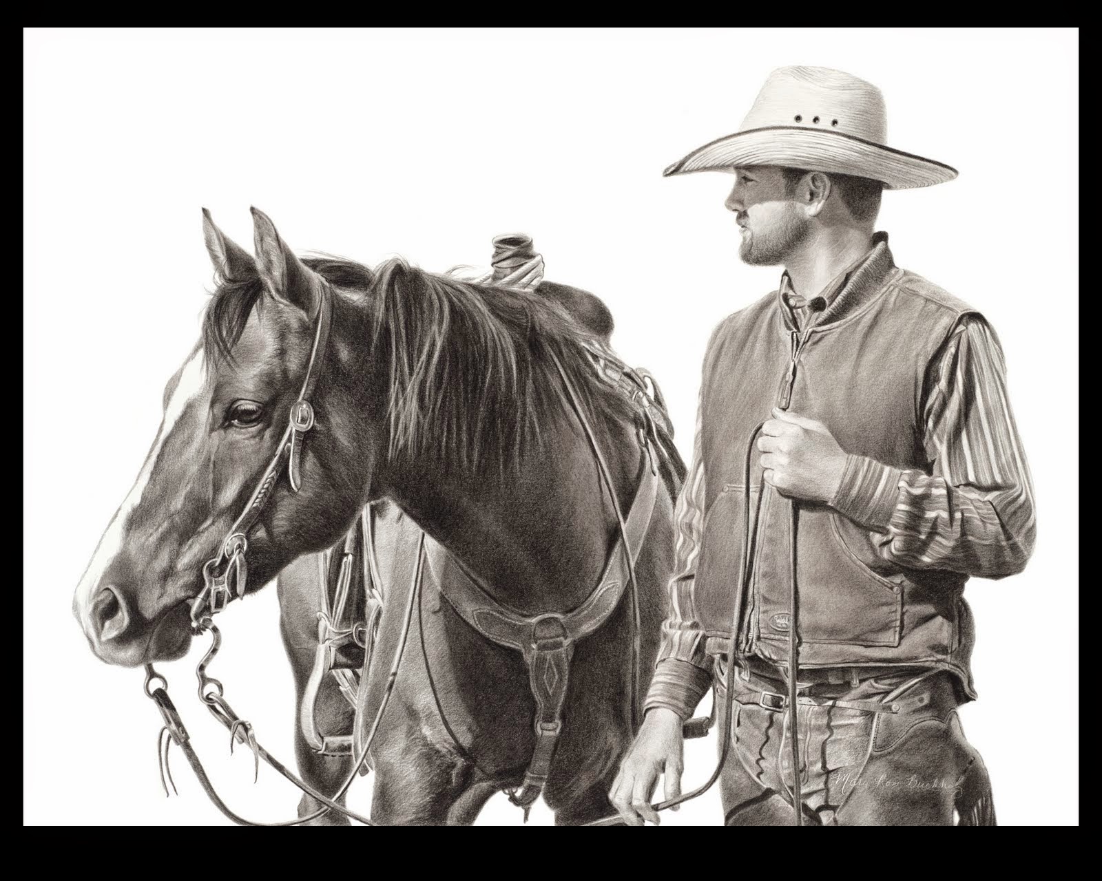 Mary Ross Buchholz es de una herencia familiar pionero de la ganadera y esas tradiciones y valores consagrados por el tiempo son una enorme parte de su vida en la actualidad. María, su esposo y sus tres hijos viven y rancho en el oeste de Texas, cerca de la ciudad de Eldorado. Por más de 17 años, el arte ha sido la devoción de María. Ella ofrece una visión de la vida del rancho diario utilizando el más primitivo de los medios, el carbón y el grafito. Es la sorprendente belleza de sus piezas con detalles en voz baja prestados que cautiva e intriga a su público.