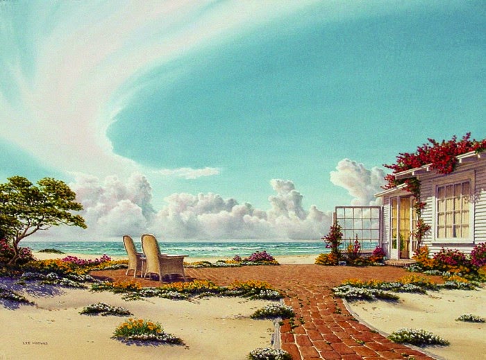La brisa salada cruje los rosales y cortinas en las ventanas. Y en la extensión horizonte turquesa del océano se funde con el cielo azul. Dos abismo sin fondo y la inmensidad del tiempo.