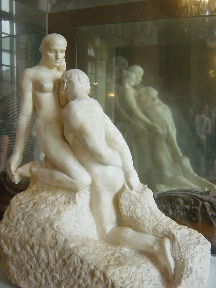 Rodin se educó en la Escuela de Artes Decorativas de París, en un ámbito no sólo ajeno al de las bellas artes, sino además menospreciado por éstas. Rodin dedicó gran parte de su juventud a acumular conocimientos sobre anatomía que en más de una oportunidad le valieron la envidia y el descontento de los escultores reconocidos como tales por la Academia de Bellas Artes de París. Célebre fue el escándalo en torno a su escultura La edad de bronce (1875), de la cual se dijo que, debido a su perfección, los moldes habían sido sacados directamente del cuerpo del modelo y no de una arcilla hecha por el artista, como se debe hacer en el método del vaciado en bronce: tal acusación era deshonrosa para cualquier escultor y Rodin, contando con la ayuda de amistades influyentes, como el pintor y escultor impresionista Edgar Degas, logró salir de la disputa no sólo victorioso, sino que además con una fama que lo puso inmediatamente entre los artistas más importantes de París.